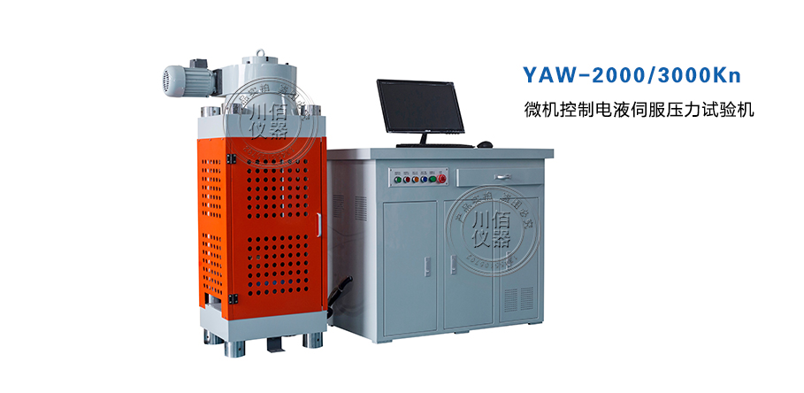 YAW-3000 型電液伺服壓力試驗機是采用了液壓動力源驅動,電液伺服控制技術, 計算機數(shù)據采集處理,可實現(xiàn)閉環(huán)控制及自動檢測的高精度材料試驗設備,其由試驗主機、油源(液壓動力源)、測控系統(tǒng)、試驗器具四部分組成,最大試驗力 3000kN,試驗機準確度等級優(yōu)于 1 級。